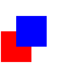 | <!DOCTYPE html> <html lang="en"> <head> <meta charset="UTF-8"> <title>Document</title> <style> *{ padding: 0; margin: 0; } .blue{ width: 100px; height: 100px; background: blue; position:relative; top:50px; left:50px; } .red{ width: 100px; height: 100px; background: red; } </style> </head> <body> <div class="blue"></div> <div class="red"></div> </body> </html>