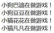 1 2 3 4 5 6 7 8 9 10 11 12 13 14 15 16 17 18 19 20 21 22 23 24 25 26 27 28 29 30 31 package me.feihong.generic;import java.util.ArrayList;import java.util.List;public class AnimalTest {public static void main (String[] args) { List<Cat> cat=new ArrayList<Cat>(); Cat cat1=new Cat(); cat1.setName("花花" ); Cat cat2=new Cat(); cat2.setName("凡凡" ); cat.add(cat1); cat.add(cat2); List<Dog> dog=new ArrayList<Dog>(); Dog dog1=new Dog(); dog1.setName("巴迪" ); Dog dog2=new Dog(); dog2.setName("豆豆" ); dog.add(dog1); dog.add(dog2); AnimalPlay play=new AnimalPlay(); play.playGame(dog); play.playGame(cat); } }